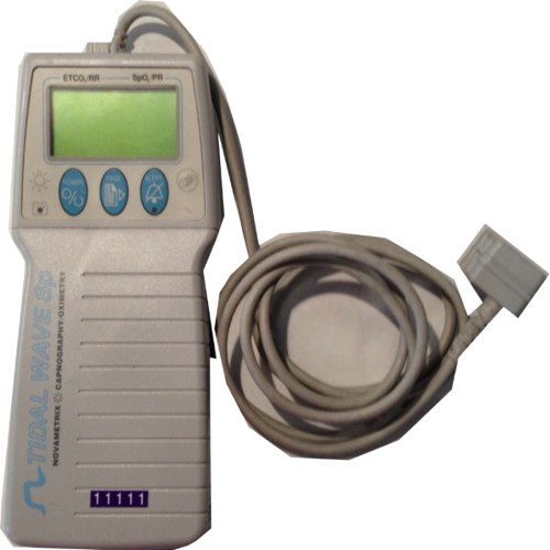 The Novametrix Tidal Wave Sp (models like 710Sp/715) is a pioneering handheld, mainstream capnograph/oximeter from Novametrix Medical Systems (now under Respironics/Philips legacy), delivering fast, reliable end-tidal CO₂ (EtCO₂), inspired CO₂, respiration rate, SpO₂, and pulse rate monitoring in a compact, portable package. As one of the only true handheld mainstream capnographs available, it provides immediate visual and numeric feedback on airway patency, ventilation adequacy, and oxygenation — essential for confirming tube placement, detecting hypoventilation/apnea, and guiding resuscitation or transport.
